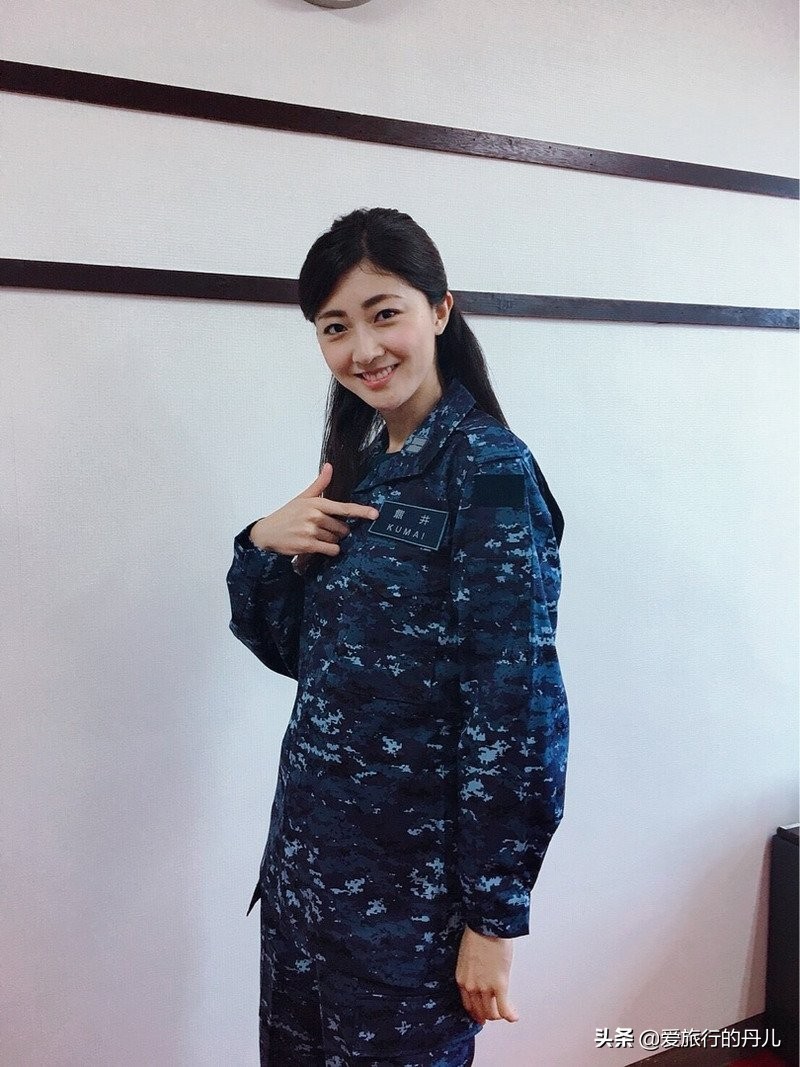 熊井友理奈身穿一身军装拍摄写真,176身高大长腿醒目,面目清秀,笑容动人。