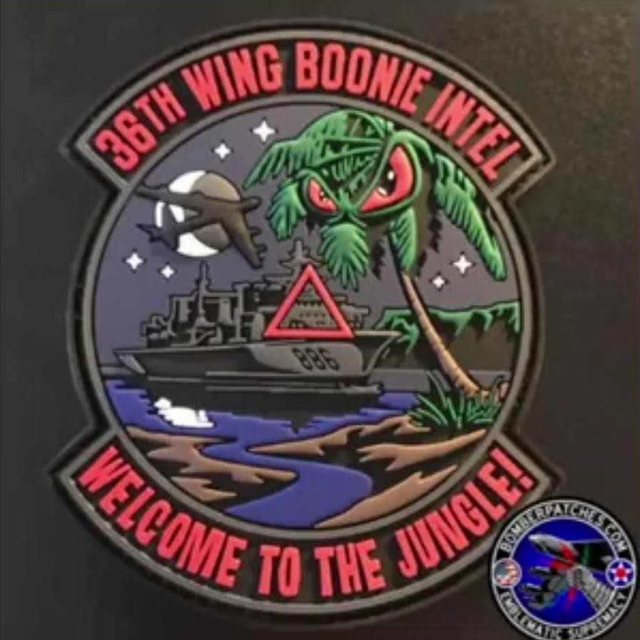 2018年驻关岛的第36联队发布的臂章,臂章中间我海军的886号“千岛湖”综合补给舰。