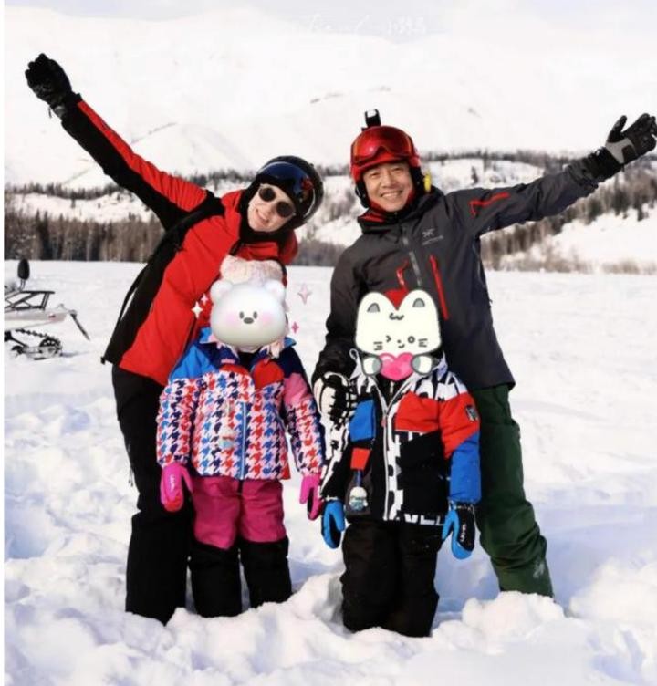 尤其是儿子,一头金发,简直萌化人心。在一张大合影中,小家伙趴在凳子上,好奇地望向别处,那份天真烂漫的模样,真是让人忍不住想捏捏他的小脸蛋。而女儿则被妈妈抱在怀里,虽然看不清正脸,但也能感受到她乖巧可爱的气质。