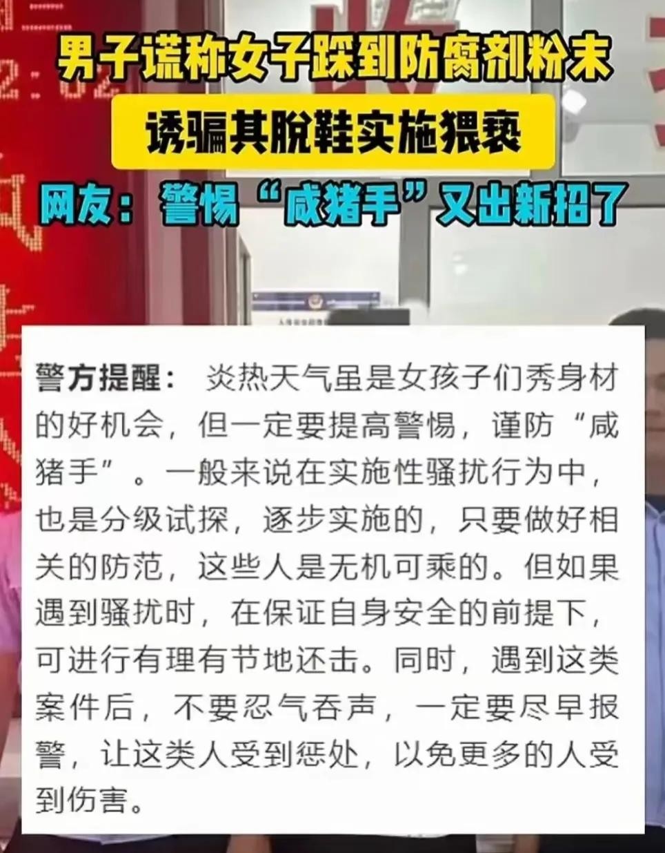 呼和浩特一名男子,以“脚踩防腐剂”的理由诱骗女子脱鞋,这名长得还不错的女子刚从地铁站出来就碰到了这名男子
