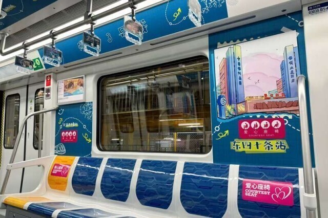 主题专列共有4节车厢,在内饰的设计上,以“漫步”为主题,用手绘的方式融入了工人体育场站、朝阳公园站、人民大学站、大钟寺站等周边标志性建筑物元素,带领乘客领略沿途“风景”。主题列车从开通当日起将上线运行三个月。