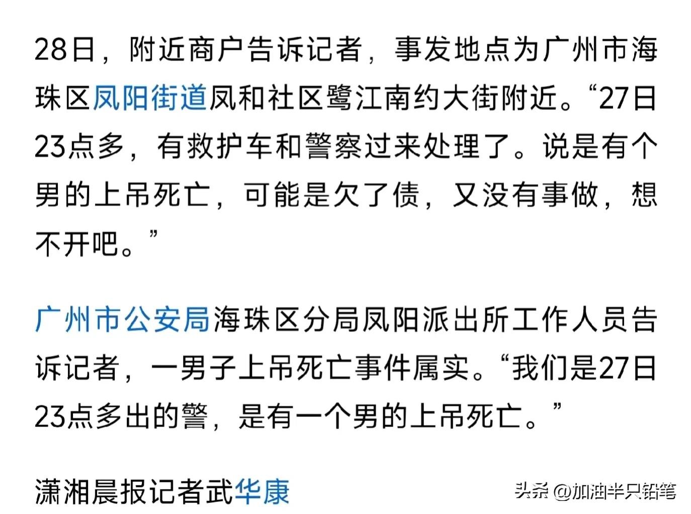 死都不怕还怕啥?广州一男子上吊身亡,原因很现实,更多细节曝光