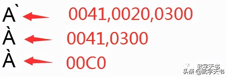 说明:0041 + 0300 = 00C0, 换一种表达方式:当遇到 0041, 0300,直接显示 00C0 即可。若是按叠加方式,不同字符,叠加位置可能会稍存偏差。