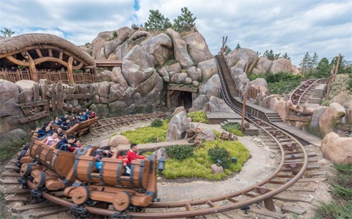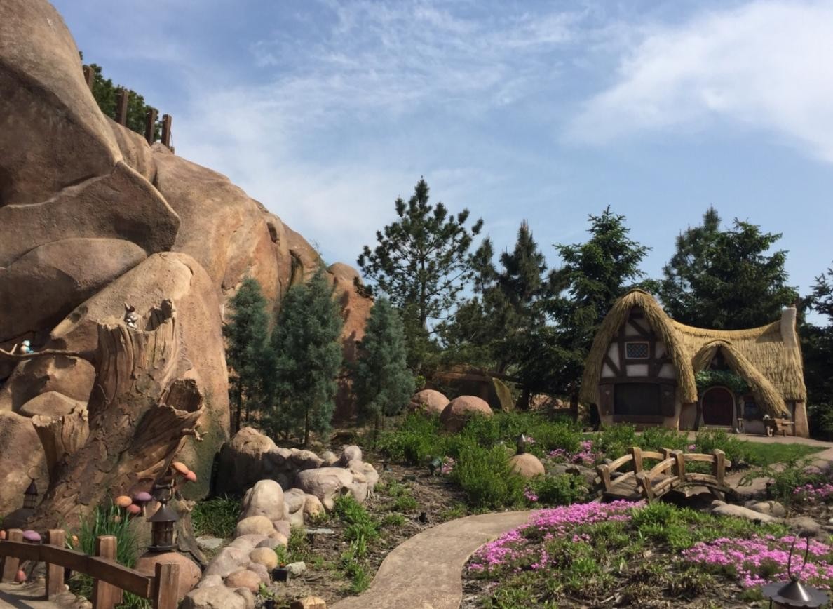 坐在矿山车上造访小矮人的世界,以非常平缓的速度前进,可以看到七个小矮人在矿山中一边唱歌一边工作的样子。每个小矮人的形象都是栩栩如生,表情也很到位,还会发出声音,仿佛就在看一部立体的动画片。