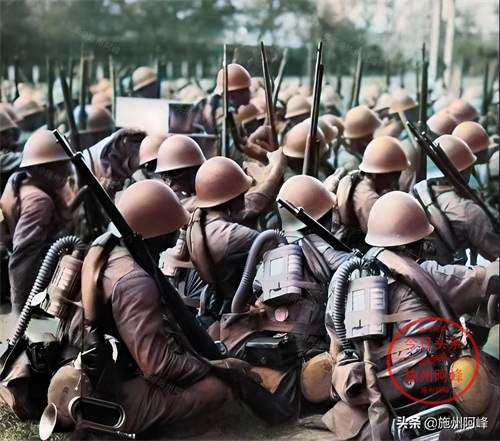 淞沪会战期间在上海街头拍摄的照片,这些日军后背上都配备的有防毒面罩,当年日军只要一打不过中国军队,就释放毒气对付中国军队。