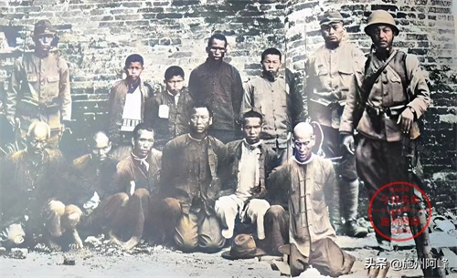 无辜的中国老百姓落入了日寇的手中,这些人的脖子上都被套上了绳子,日寇强迫他们跪在地上,照片拍摄完毕后,这几个人应该是凶多吉少了。