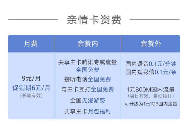 ■腾讯王卡亲情卡资费
