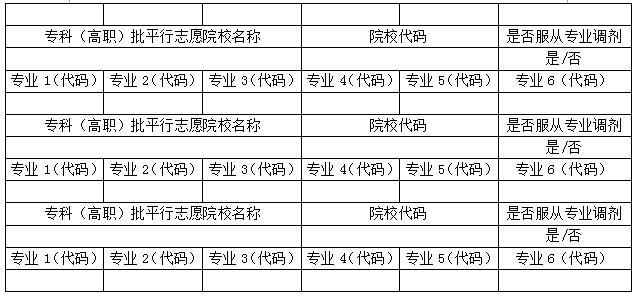 11.专科(高职)批(设置6个院校志愿,除第一志愿外,其他为平行志愿):