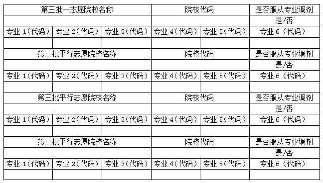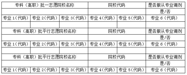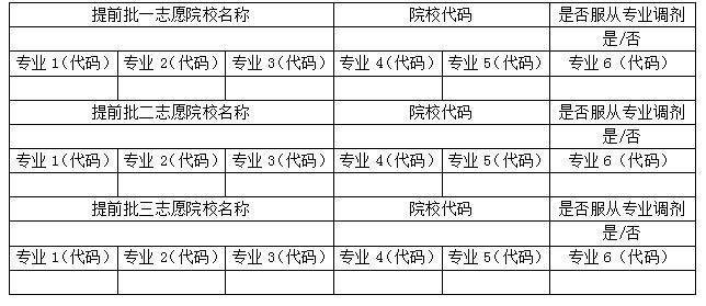 网上填报志愿样表