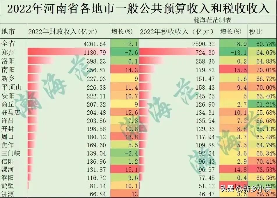 2022年河南省各地市财政收入排名:南阳市以256.87亿元稳居三市第一名,驻马店以204.48亿元屈居三市中第二名,信阳以136.96亿元三市排名倒数第一。
