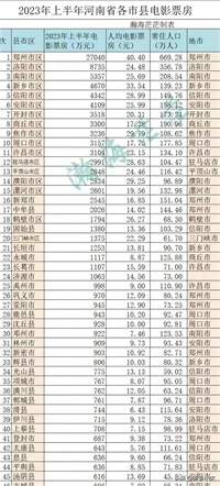 2023年上半年河南省各市电影票房排名:南阳市区以5373万元票房在全省18个地市中排名第三名,南阳电影票房在豫南三市中排名第一名,信阳市区电影票房以4342万元位居豫南三市中第二名,驻马店市区以2991万元位居豫南三市中最后一名。