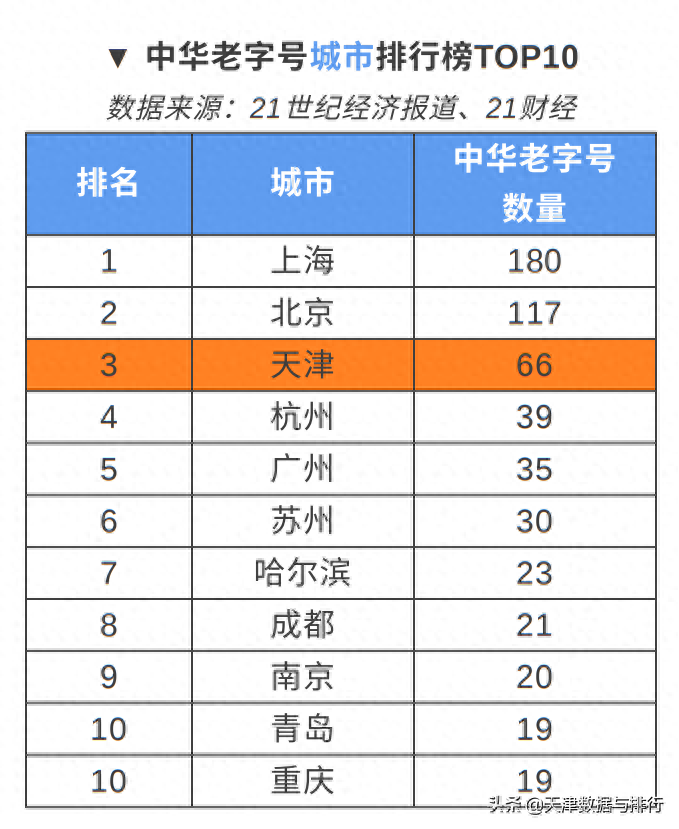 天津共有中华老字号66个,位居全国城市第3