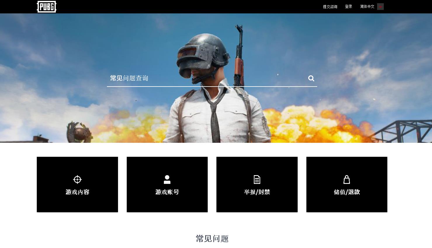 https://support.pubg.com/hc/zh-cn,页面如下: