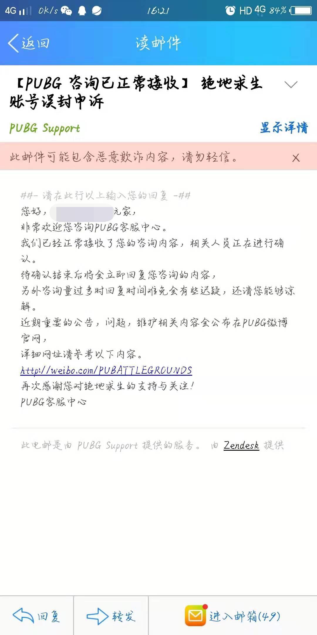 PUBG申诉页面