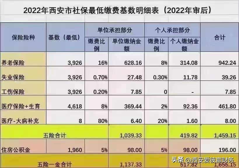 下面这张图是社保各承担的最低费用比例,当然这个基数也是根据每年都会做一调整或高过低,在年审的时候补差就可以了。