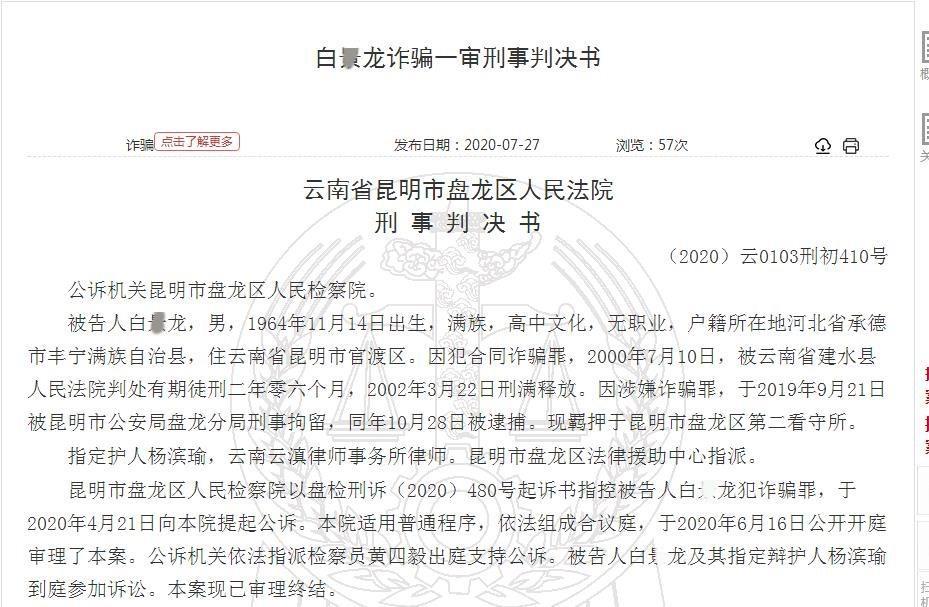 忽悠了成千上万人几年的“中国红梅集团 博智大爱平台”,虚构民族资产解冻的事实,白某龙被判刑了。