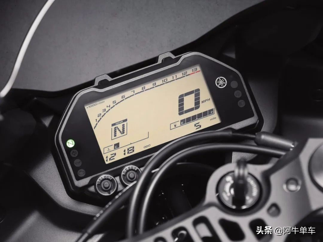 车架采用钢管钻石型车架,坐高780mm,整备质量171kg。采用37mm的KYB倒置式前叉,带有大哥R1标志性的“冲压进气”,以及同款三角板。