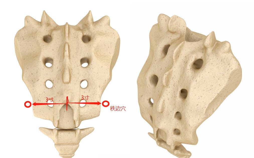 看样子是在骶后孔外侧了,因为正中到骶后孔的距离肯定小于3寸。
