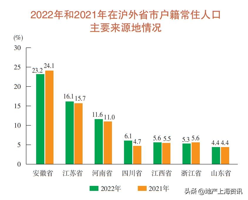 外省市沪籍人口1006.26万人,同比2021年减少了25.73万人。沪籍人口增加了12.19万人。
