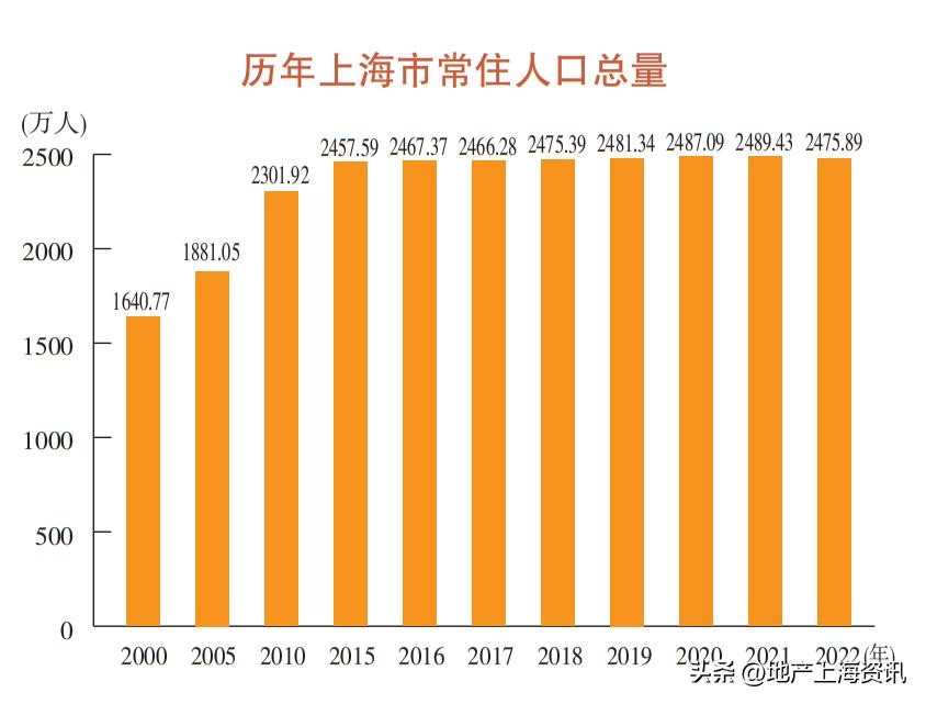 2022年上海常住人口为2475.89万人,同比2021年减少了13.54万人。