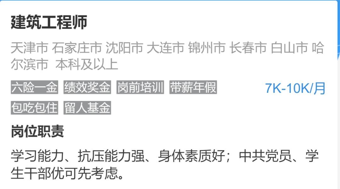 三、工资待遇:六险一金;本科毕业生见习期不低于7000元,一年后定职定级,按照职称或职务调整工资;硕研毕业生直接执行助理级职称待遇,不低于8000元。