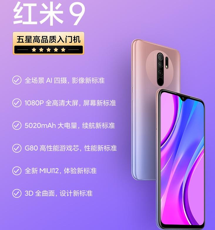 这款红米9相对于9A,处理器是联发科G80,性能比红米9A好一些。电池同样是5000毫安时的超大电池,摄像头升级到4颗,可以说诚意满满。屏幕也升级到1080P,且带有德国莱茵低蓝光的认证。可以说主要的升级在于芯片,足以应付日常的聊天购物,以及一些轻量游戏的需求。
