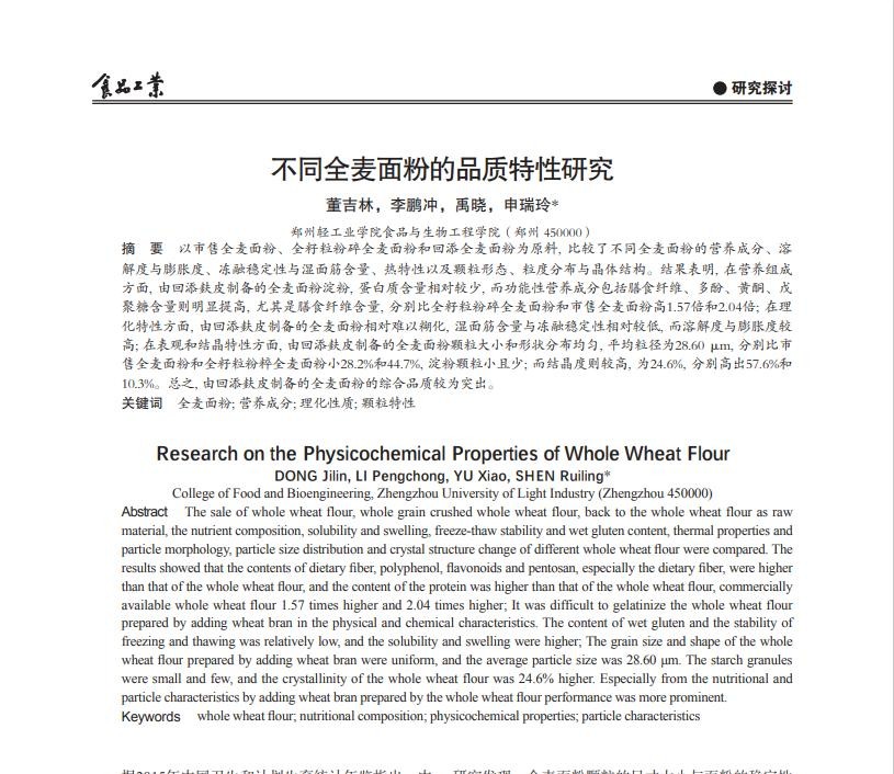 [1]董吉林,李鹏冲,禹晓,等.不同全麦面粉的品质特性研究[J].食品工业,2018,39(04):242-247.