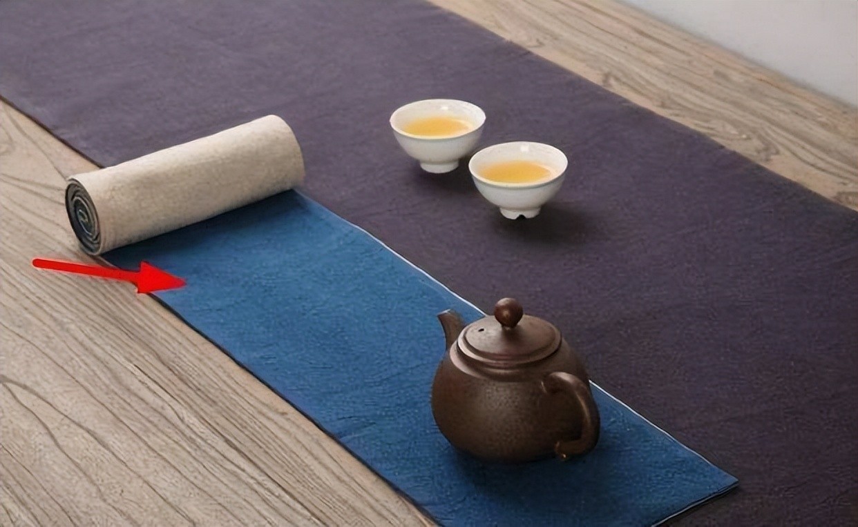 茶巾(下图):又称为“茶布”一般用麻、棉等纤维制造。主要用于擦干茶壶或公道杯底部的杂水,也可以用来擦干桌面的滴水,保证桌面整洁。