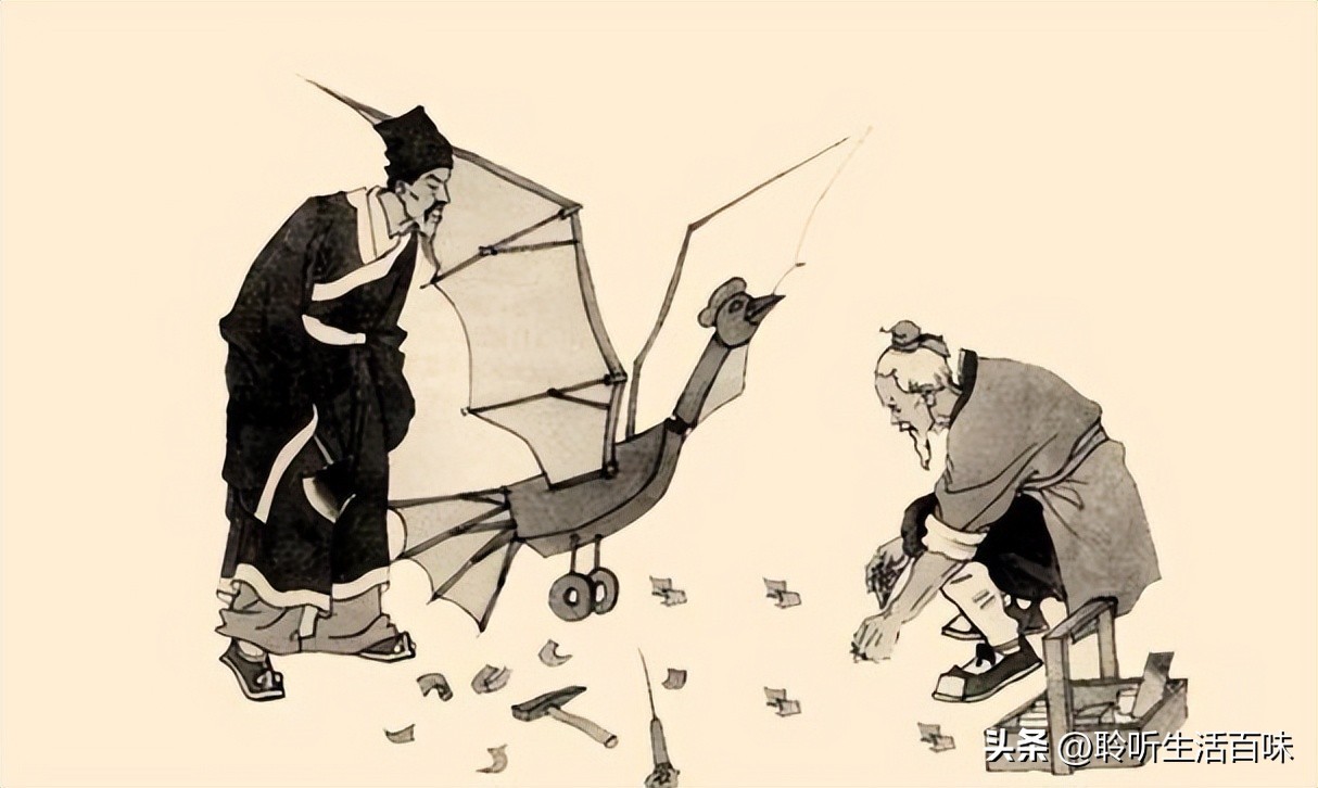鲁班的传奇故事在民间广为流传。相传,鲁班新婚不久便被征召到国都做工,因思念妻子,便发明了一种名为“木鸢”的飞行器,只要念几句咒语,便能载着他飞回千里之外的家中。然而,他的妻子因好奇偷偷骑上木鸢,却因怀孕在身,在空中分娩导致法力失效,最终从半空坠落身亡。这一悲剧不仅让鲁班痛不欲生,也使得他诅咒所有学习《鲁班书》的人。