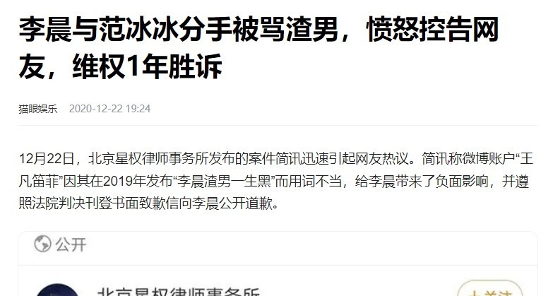与此同时,张馨予的转变也引发了人们对李晨的关注。与张馨予分手后,李晨的事业和口碑都经历了一段低谷期。他高调与范冰冰秀恩爱,这段恋情最终也走向了分手。分手后,李晨屡次遭受网络暴力,甚至还被胡乱造谣。尽管他的工作室数次澄清,但这些谣言并没有停止,反而变本加厉。终于,在2020年,持续了一年的维权终于胜诉。
