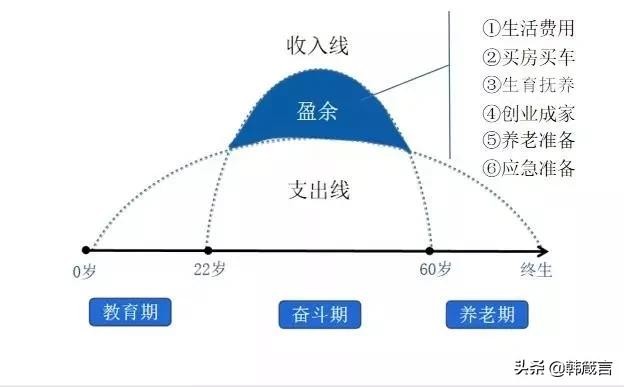 但无论在哪个人生阶段,我们都离不开衣、食、住、行。我们不能否定的是:我们一直都在花钱。所以说,人生就是一个漫长的消费过程,这就是我们的支出线。