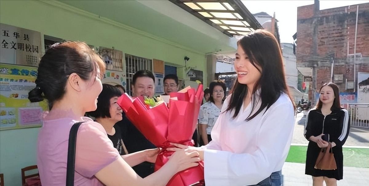 李然回到家乡后积极参加各项活动,并与学弟学妹们进行交流。她被网友称赞为“喝水不忘挖井人”,因为她没有忘记自己成长和受教育的地方。