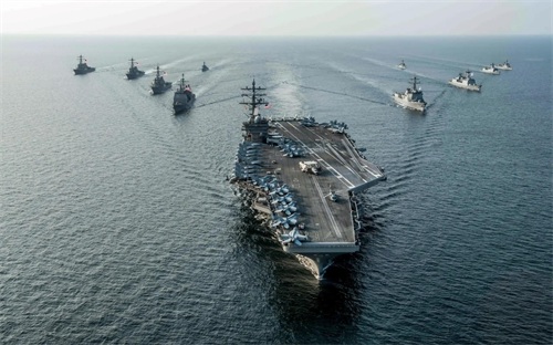 无论是尼米兹级还是福特级航母,它们的战斗力都非常强大。航母作为航母打击群的核心,通常与驱逐舰、巡洋舰、潜艇等其他军舰协同作战。这些舰艇各司其职,共同保障整个打击群的作战能力和安全。