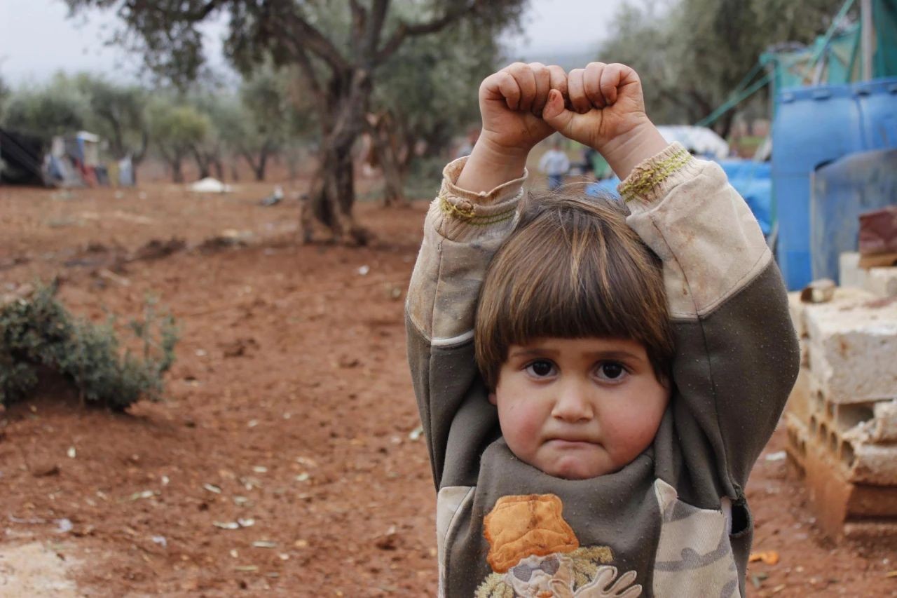 难民营内,一名4岁的小女孩,误把相机当成枪,害怕的举起了自己的双手投降…