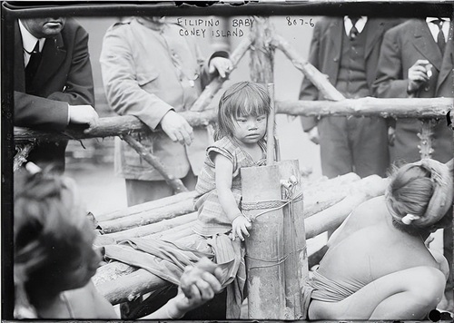 一个菲律宾婴儿和她的家人在纽约科尼岛的人类动物园里,被当成猴子一样围观…落后就会挨打,因为科技发达也不一定道德高尚…