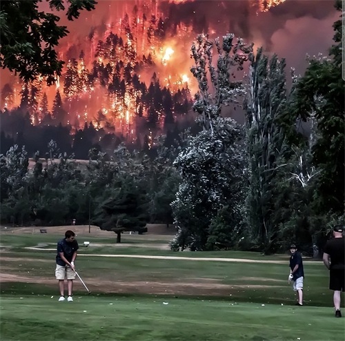 俄勒冈州森林大火熊熊燃烧时,有钱人们正在悠闲的打高尔夫球,悠闲自得,似乎世间的一切苦难与他们毫不相干…