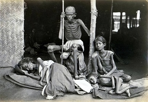 印度大饥荒期间,一名瘦骨嶙峋的男子正在保卫自己的家人,防止他们被人吃掉…
