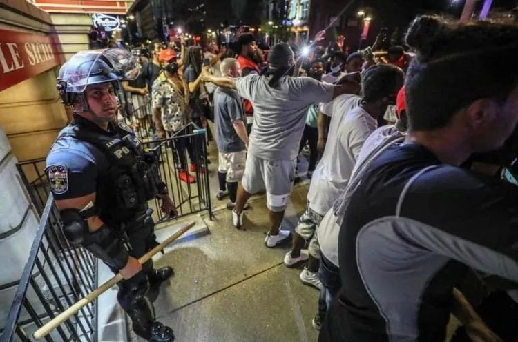 2020年的美国黑人抗议活动中,一群黑人正在保护一名走散的警察,暴力不能解决一切问题,有时候只会激化矛盾…