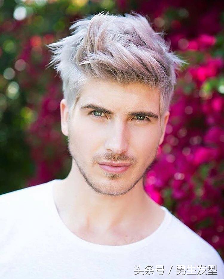 (4)一款奶奶灰发色飞机头非常惊艳,男生在鲜花之前粉红扑扑也很 nice!