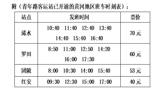 21日起,武汉青年路客运站新增红安班次