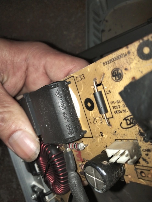 性电容的旁边,五色环电阻的另一个引脚