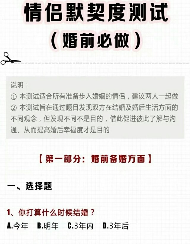 情侣测试题来啦!看看你们的默契度