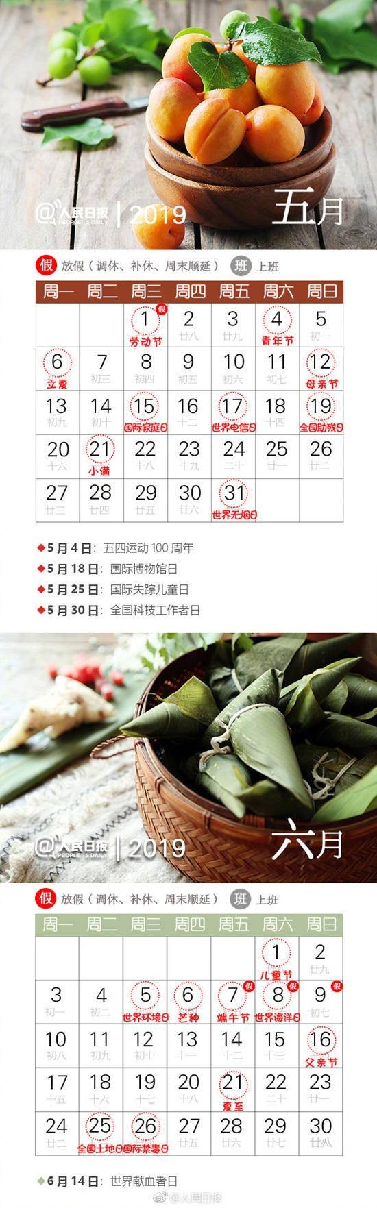 收藏!2019年节日日历