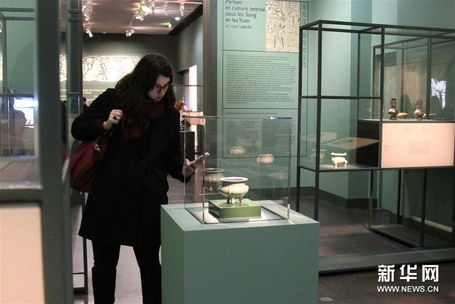 “中国芳香:古代中国的香文化”展9日起在巴黎市立赛努奇亚洲艺术博物馆正式对公众开放,百余件陶瓷、青铜等香具和书画将引领参观者进行跨越两千多年的中国“芳香”之旅,感受中国古代灿烂的文化。 新华社记者张曼摄