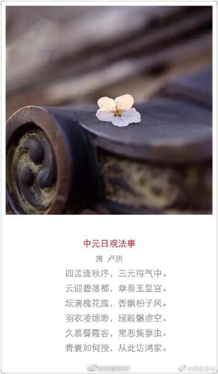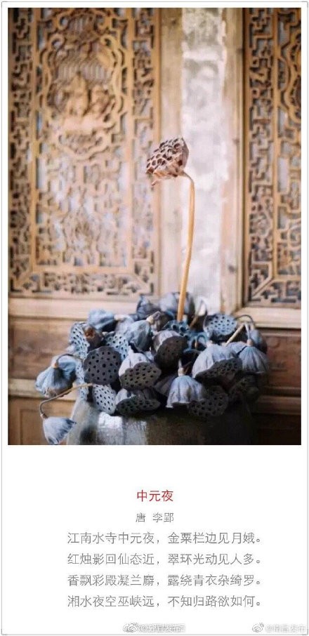 【别样中元节,吟诗祭祖先】中元节是我国民间传统节日之一,极富传说色彩,在南方中元节也成为鬼节,每到农历七月十五这天人们带上祭品,到坟上去祭奠祖先,与清明节上坟相似。历代诗人咏怀中元节的诗词很多,小编收集了部分。今天,我们一起吟诵古诗,缅怀先人关于农历七月