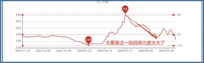 现在大蒜价格走势有点危险了,根据缠论走势来看的话,预估未来还要跌。主要原因在于从4.8元最高点回调下跌的幅度太大了,然后横盘调整后多方做多的力量不足。再一个就是现在新蒜下来了,新蒜的水分及杂质比较多,变相的把大蒜价格拉低了。