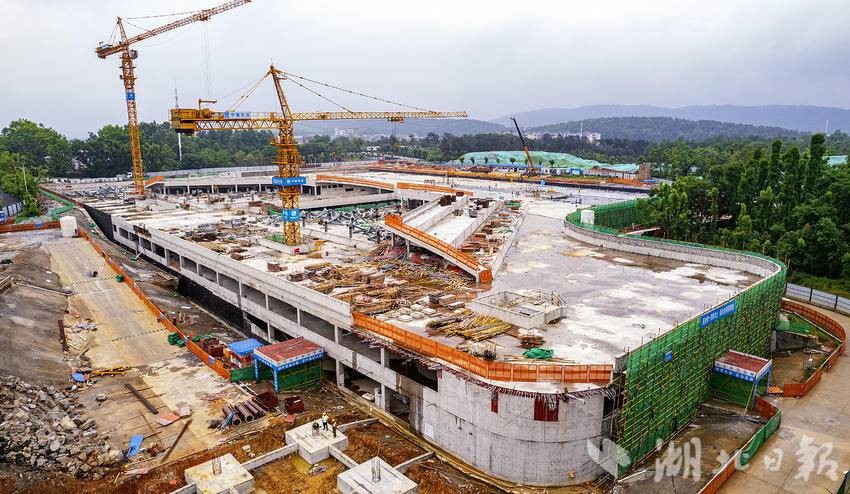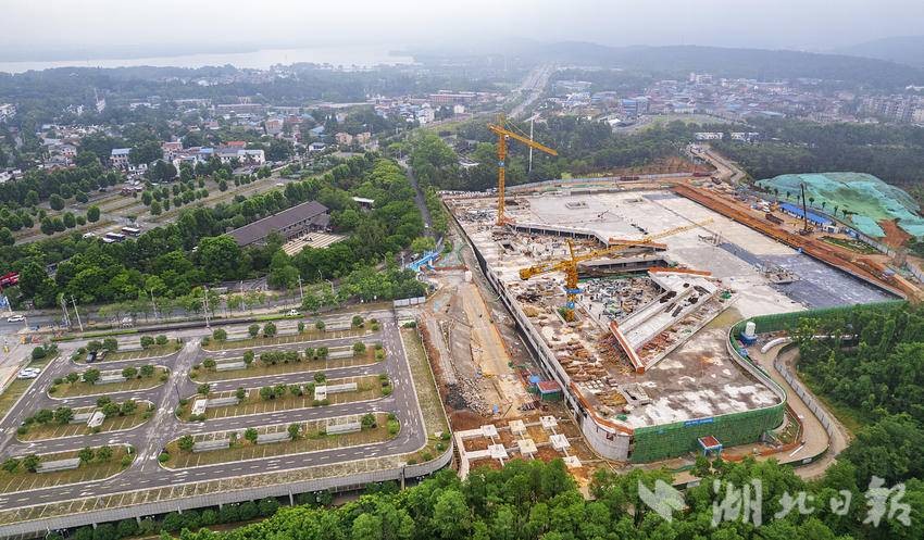 5月22日,鸟瞰武汉东湖磨山景区生态保护与综合提升工程——磨山揽翠停车场项目,目前项目已顺利完成主体结构封顶。揽翠停车场位于东湖生态旅游风景区内,计划新建地下车库及配套54850平方米,改扩建停车位2400个,建成后将通过车辆下穿方式,形成人车分离的立体交通模式,彻底解决现有人车混行问题,同时通过地面景观建设,提升景区门户形象。(湖北日报全媒记者 朱熙勇 摄)