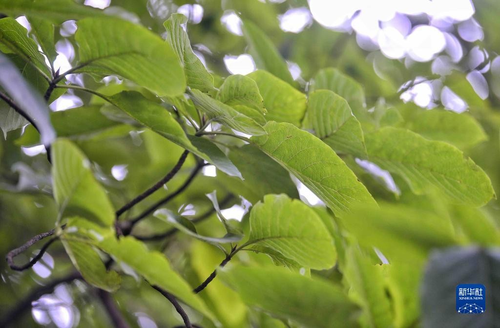 这是10月8日在成都市龙泉山城市森林公园(龙泉驿段)拍摄的香果树枝叶。