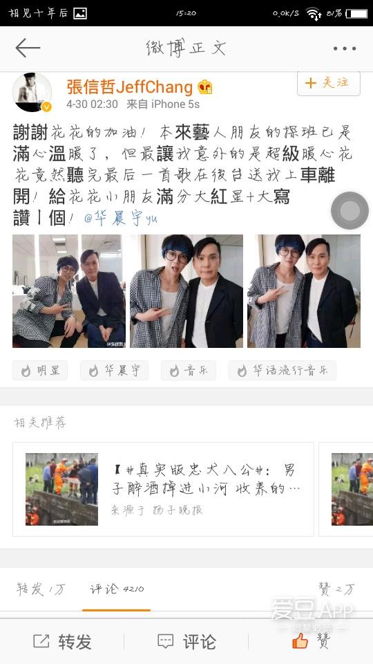 160501 张信哲晒与华晨宇合照 花花搞怪卖萌换不停风格