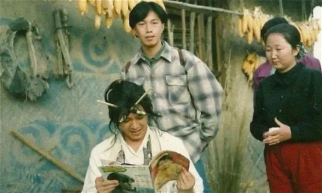 周星驰顶着至尊宝的外型在看杂志,头上顶着两根木棍,真好奇星爷到底看的什么文章,那么乐呵,连身旁的姑娘都跟着看呆了。